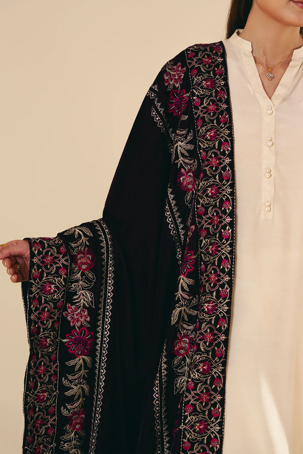 1 PC Embroidered Velvet Shawl (2.5 M)